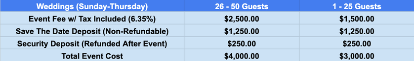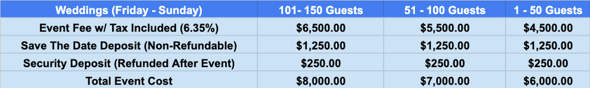 Our most popular package, the platinum package gives you the most exclusivity at Bluebird Farm CT.