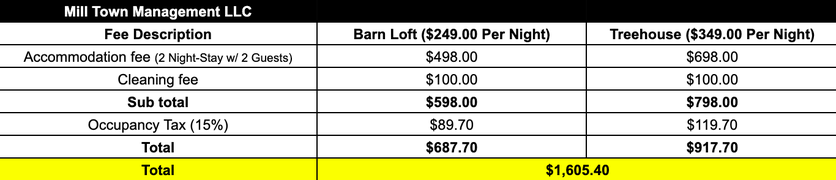 - Full Use of the Treehouse & Barn Loft Rental Units